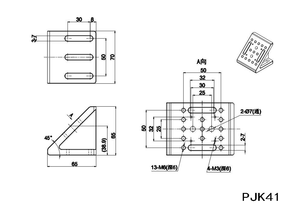 | PJK41 | 45° | 铝合金 | 260g |