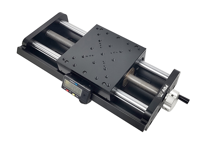 手动数显平移台移动方式采用直线轴承,移动平稳。移动距离较长,且侧面加装LED 数显,分辨率0.01mm。