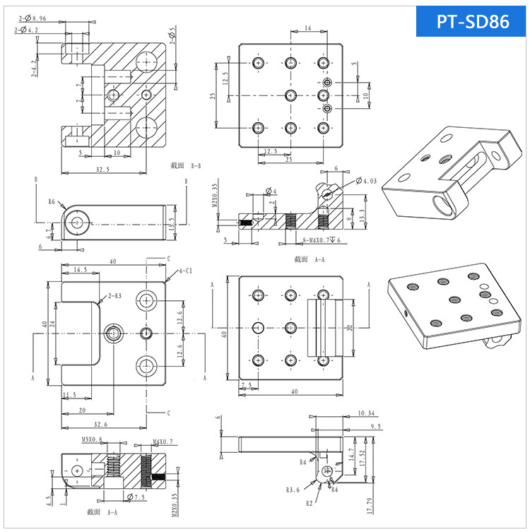 5、底板带有5mm沉头螺纹通孔,可用M4柱头螺丝;