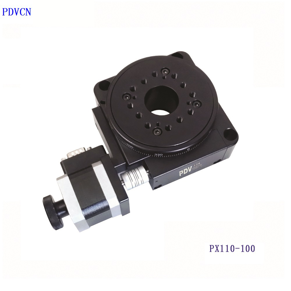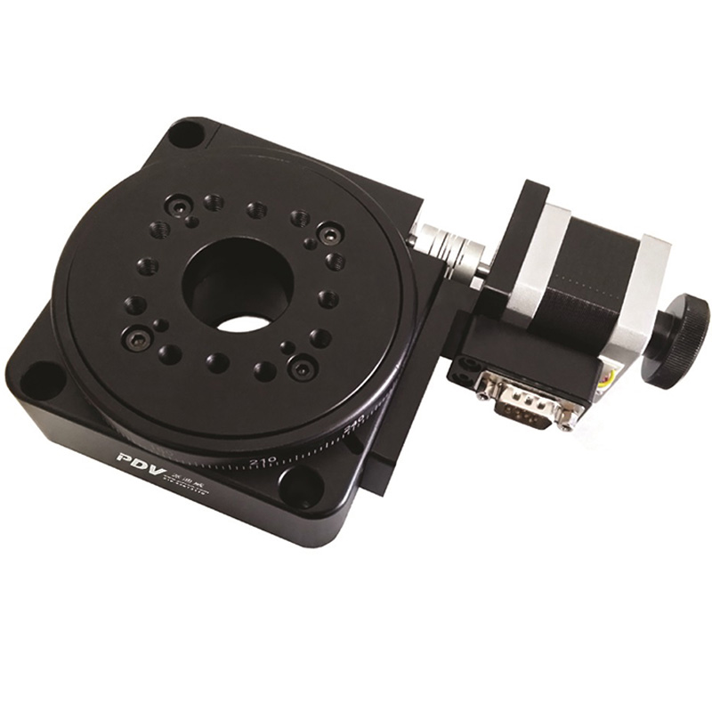 中空旋转平台通过电机驱动,实现角度调整自动化。精加工蜗轮蜗杆或齿轮传动,角度调整无极限。精密轴系设计,保证精密高,承载大;步进电机与传动件通过高品质弹性联轴器连接,排除空间和加工形位误差。旋转台面外圈刻度直观;标准接口,方便信号传输;手动手轮配置,电控手动均可。可选装伺服电机或步进电机。